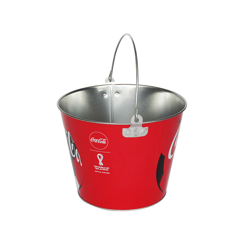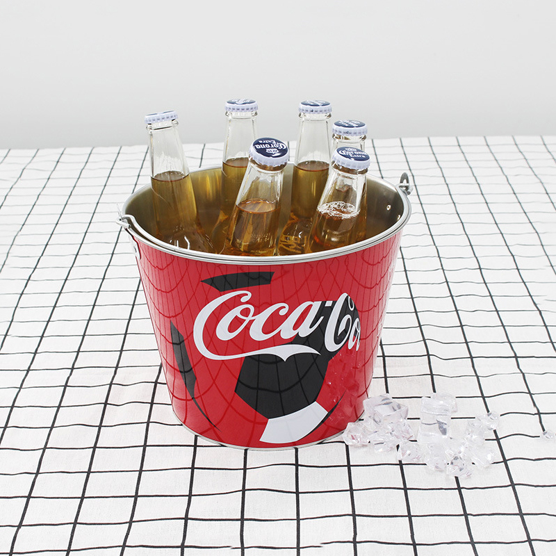 This custom tin ice bucket is designed for beverage brands and bar promotions. Made from high-quality tinplate, it features strong durability and excellent printing performance for vibrant logos. Widely used in bars, restaurants, and marketing campaigns.